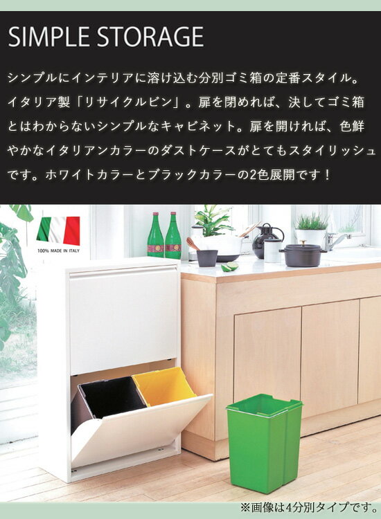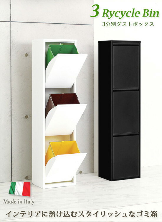 3段ダストボックス 【SIMPLE STORAGE イタリア製 3リサイクルビン 325t01876】 [送料無料] フラップ扉 薄型ダストボックス 3段ゴミ箱 3分別ダストボックス スタイリッシュ