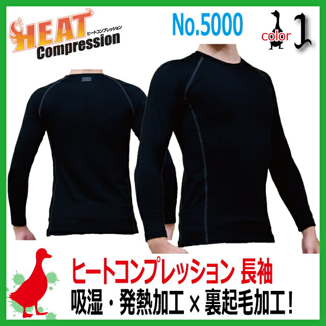 防寒発熱インナー ヒートコンプレーションクルーネックシャツ / No.5000 長袖ヒートテック 吸湿発熱素材使用【スキー スノーボード スポーツ マラソン ランニング 野外での活動にも最適な下着】