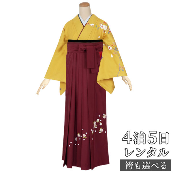 【レンタル】卒業式 袴 レンタル 先生 袴 レンタル 女 袴 セット 教職員 教員 職員 先生〔HG581〕 黄色 菱取り桜 正絹 卒業式 袴 女性 はかま ハカマ 教員 先生 レンタル 貸衣装 フルセット